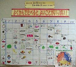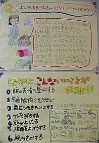 かみかみ保健集会の後、委員会活動でも「よくかんでたべると よいことがいっぱい!」ということをテーマにした掲示物を作りました。そして、簡単に月曜日の児童朝会でも紹介しました。