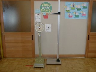 ![]() いつでも身長・体重が測れるようにしてあります。毎日のように「1mm伸びた。」と、測りにくる子もいます。自分の成長を楽しみにしている様子がわかかります。 |