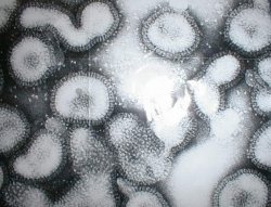 だんだん寒くなって旭小学校でもかぜをひいた人が増えてきました。 最近、かぜをひいた人は手をあげてください。 たくさんの人がかぜにかかったようです。 かぜウイルスは、こんな形をしています。 丸くて角がたくさんついています。 毒がこの角から出てきて、体の調子が悪くなります。 |