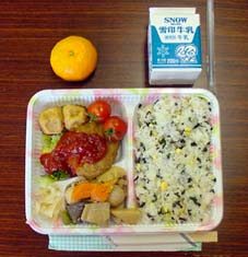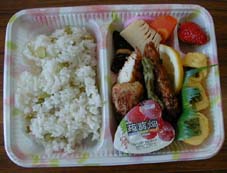 恒例になっているおたのしみ給食、おべんとうスタイルになって