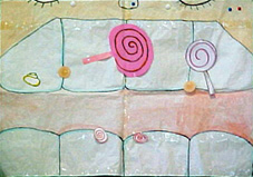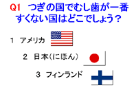 それでは、クイズコーナーです。準備をしますから、少しお待ちください。むし歯のバイキンは、お口の中に残っているたべかすがすきです。とくに、あまいものがだいすきです。 このように、食べると白いウンチをだします。じつは、この白いウンチこそ、歯垢なのです。さっきのクイズで言ったとおり、プラークともいいますが、日本では、昔から「はくそ」と言われてきました。「はくそ」は、その「歯垢」が歯にへばりついて、時間がたつと「歯」をとかす酸をつくりだします。そうして、歯にあながあいてりっぱなむし歯ができるのです。 司会者:なるほど、むし歯のできるようすがよくわかりました。みなさん、拍手でお送りしましょう。 |