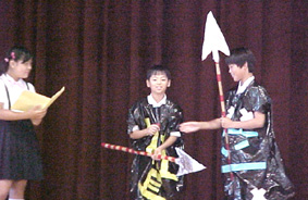今年こそは・・・と思いながらも、やっぱり あわただしく集会当日を迎えました。小道具は、昨年度のものをリメイクしましたが、衣装だけは凝りました。なかなか、舞台映りがよいでしょう!