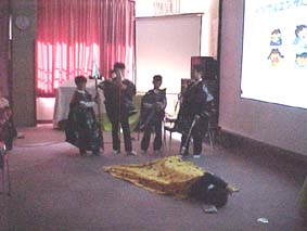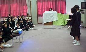 ![]() 今年の集会は、給食週間にちなんで、給食委員会とのコラボレーションでした。ここ何年かは、保健集会といえば劇というイメージが定着しているのでしょう。準備期間が短いというのに、委員全員の希望で劇をやろうということになったのです。ストリーについては、ほとんどAさんのアイデアを採用していますが、熱心ですばやい仕事ぶりに本当に感心しました。台本はすんなりできあがったものの練習その他では、とても厳しい状況でした。なにしろ、かぜのシーズンです。全員そろった本格的な練習ができませんでした。でも、なんとか本番は、フルメンバーでのぞむことができ、それぞれの自己評価で80点以上のできだったということです。 |